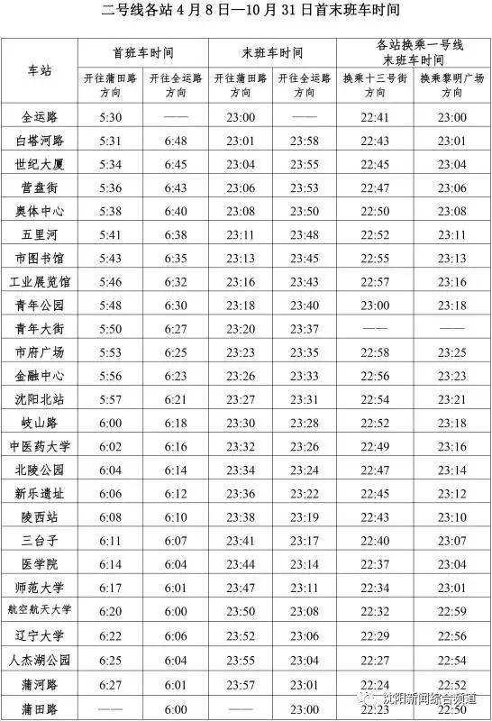 航空航天大学站开往全运路站方向的首班车时间仍为6:00