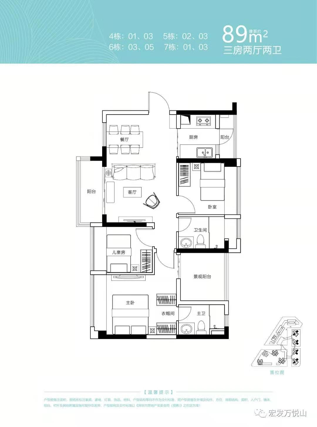 3室2厅2卫- 89㎡