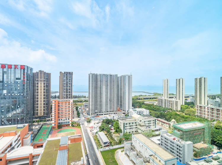 作为越秀地产落子前海首作,位于宝安碧海片区,打造一线海景滨海雅居。项目总占面约1.68万m²,总建面约9.58万m²,容积率4.0,绿化率35%。项目配建一所九班制幼儿园,自带约2000m²社区商业,周边优质品牌中小学环绕,距离地铁11号线碧海湾站约800米,约10min徜徉宝中优质配套。项目内部设计打造有高绿量森林院子(首层中心花园+二层屋顶花园)、阳光草坪聚场、全龄互动亲子聚场、森系无界泳池以及无界架空层体系(全龄化活动空间、奢雅泛会所),搭配高定现代归家门楼,成就多维理想人居。