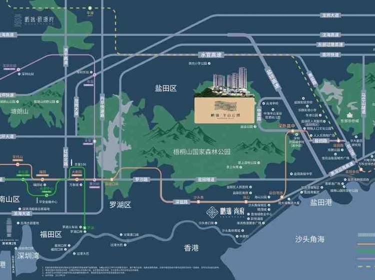 海:盐田金色海岸码头、沙头角口岸、莲塘口岸、梅沙旅游专用口岸(规划中),畅享半小时深港生活圈。 陆:距8号线/2号线深外高中站直线距离约700米,直达罗湖/福田,大小梅沙/东部华侨城;未来规划18号线——贯通东西的大动脉(宝盐线)。 空:东部通航直升机主运行基地。