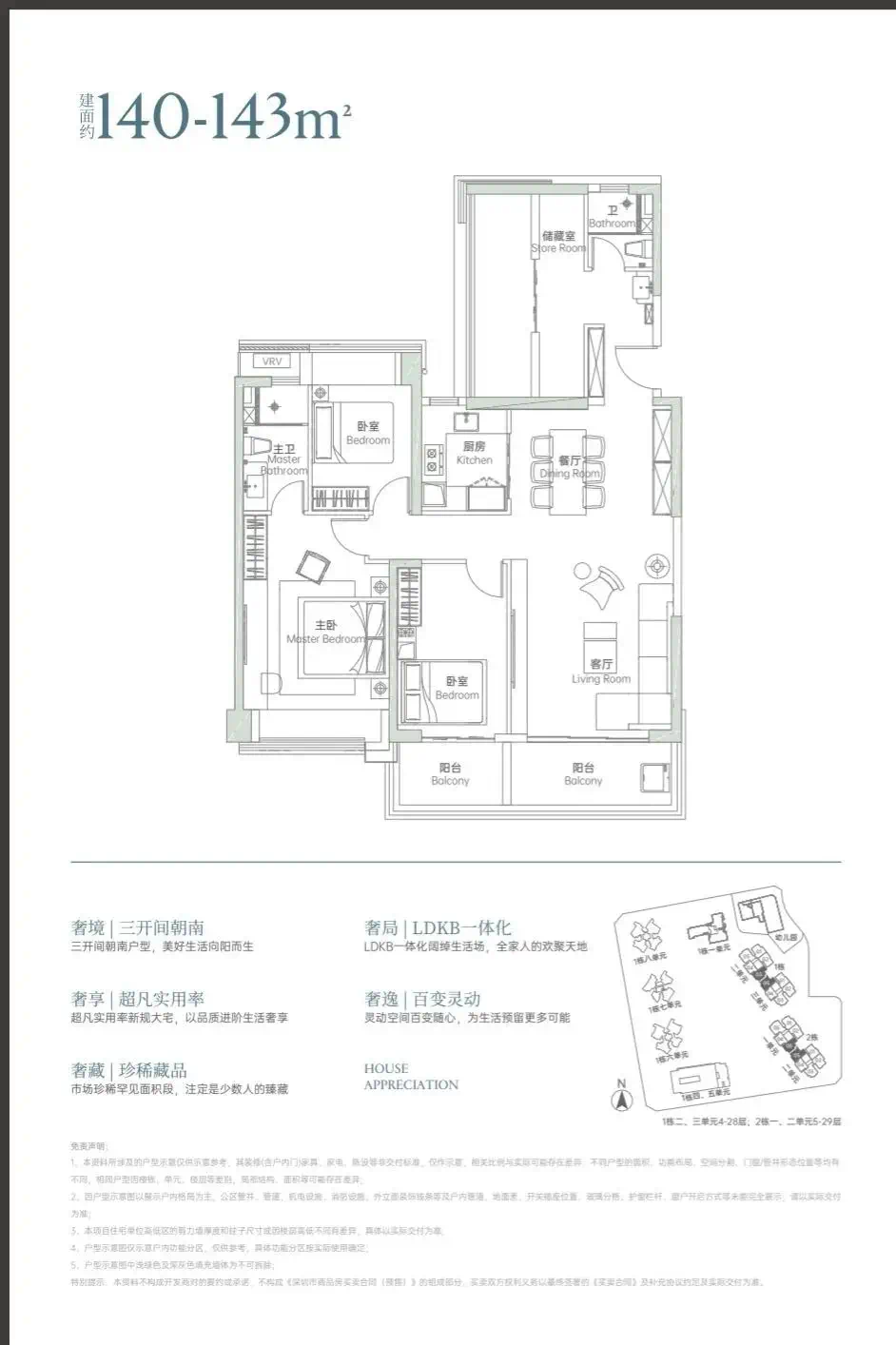 新世界香蜜四季花园商品房总量共923套,主要集中于右侧,为1栋1-3单元和2栋1-2单元,套内户型面积<90㎡的产品占79.74%,共736套。