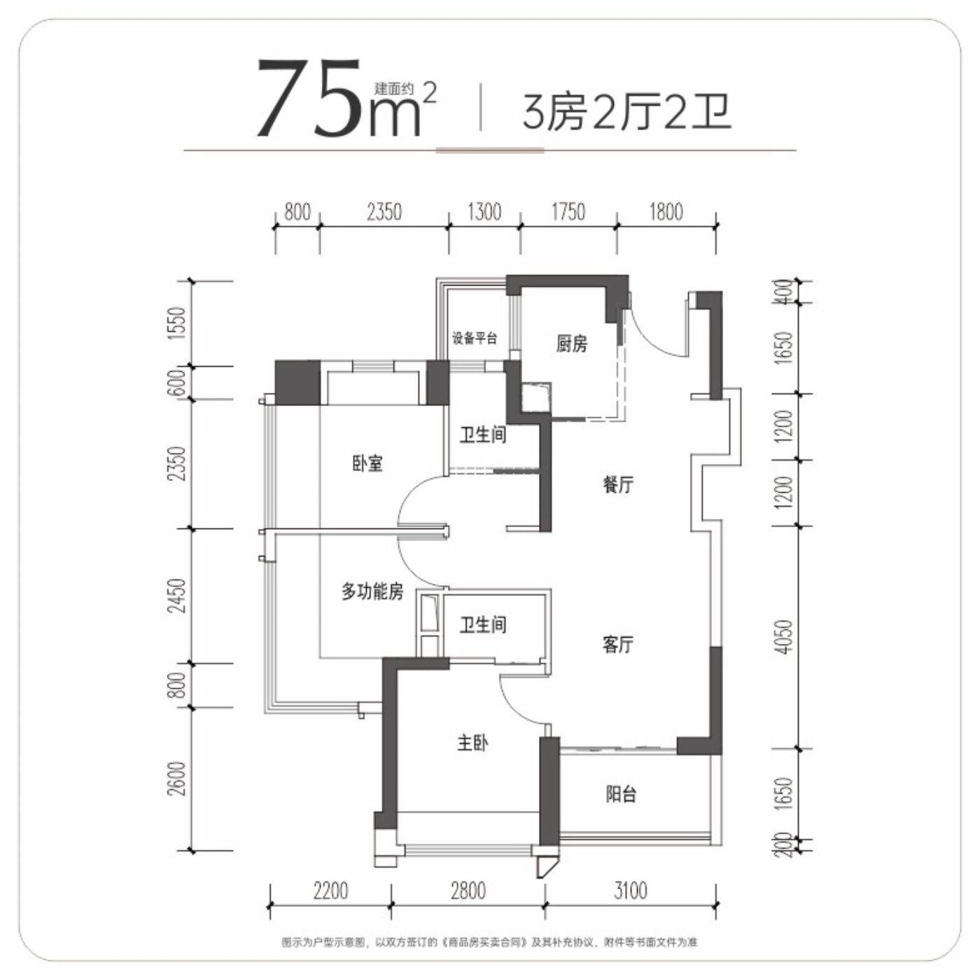 308万/套 建面75m²