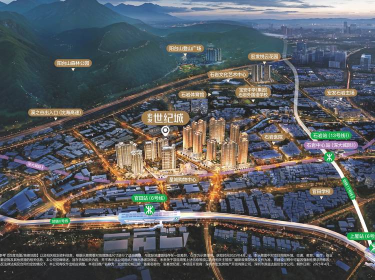 教育配套:共享学区涵盖宝安区官田学校(九年一贯制)、宝安中学(集团)石岩外国语学校(12年一贯制),提供 7350 个学位,后者为国际化特色学校。