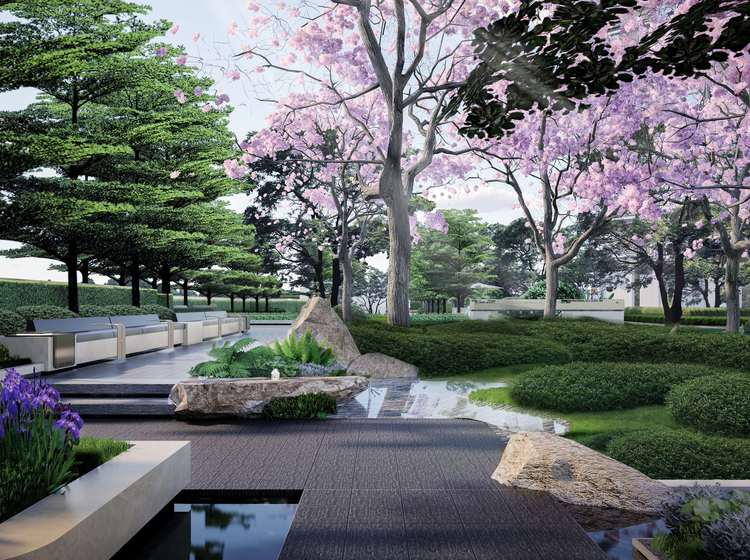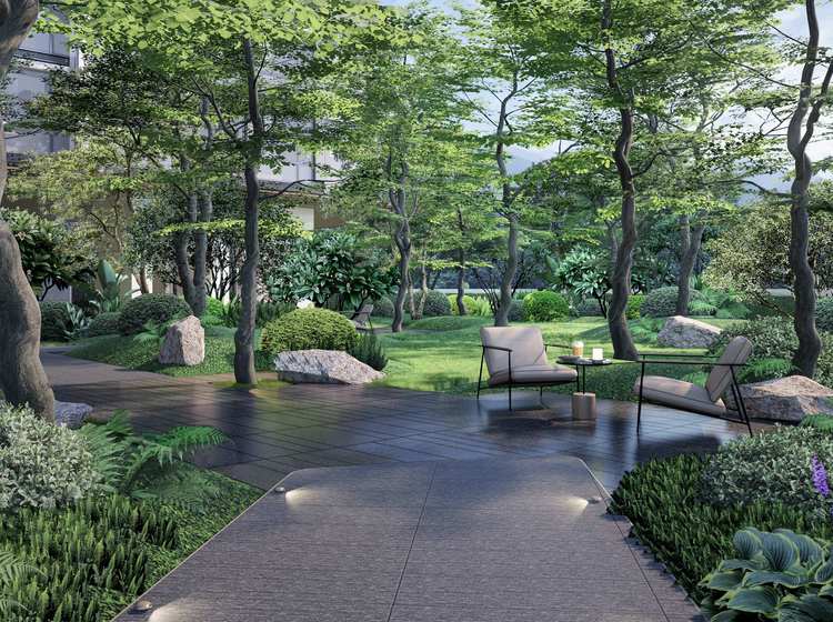 园林12境:约1400㎡的全龄儿童主题乐园,约62米宽酒店式入口景观、下沉水院、无边际泳池,约590㎡的花林水岸会客厅,约320㎡的林下运动场;约200㎡深圳首个社区中草药园等;主题架空层。