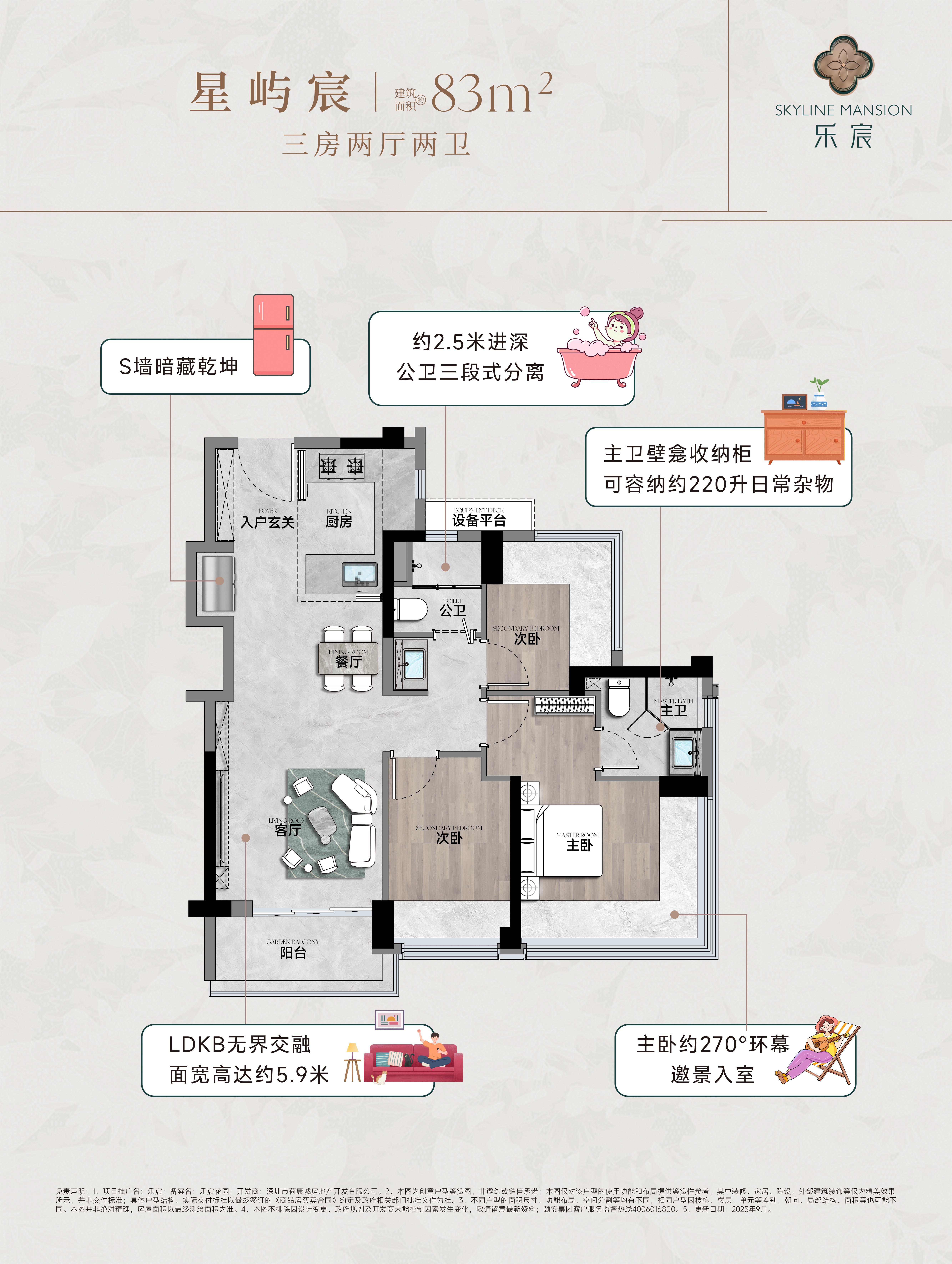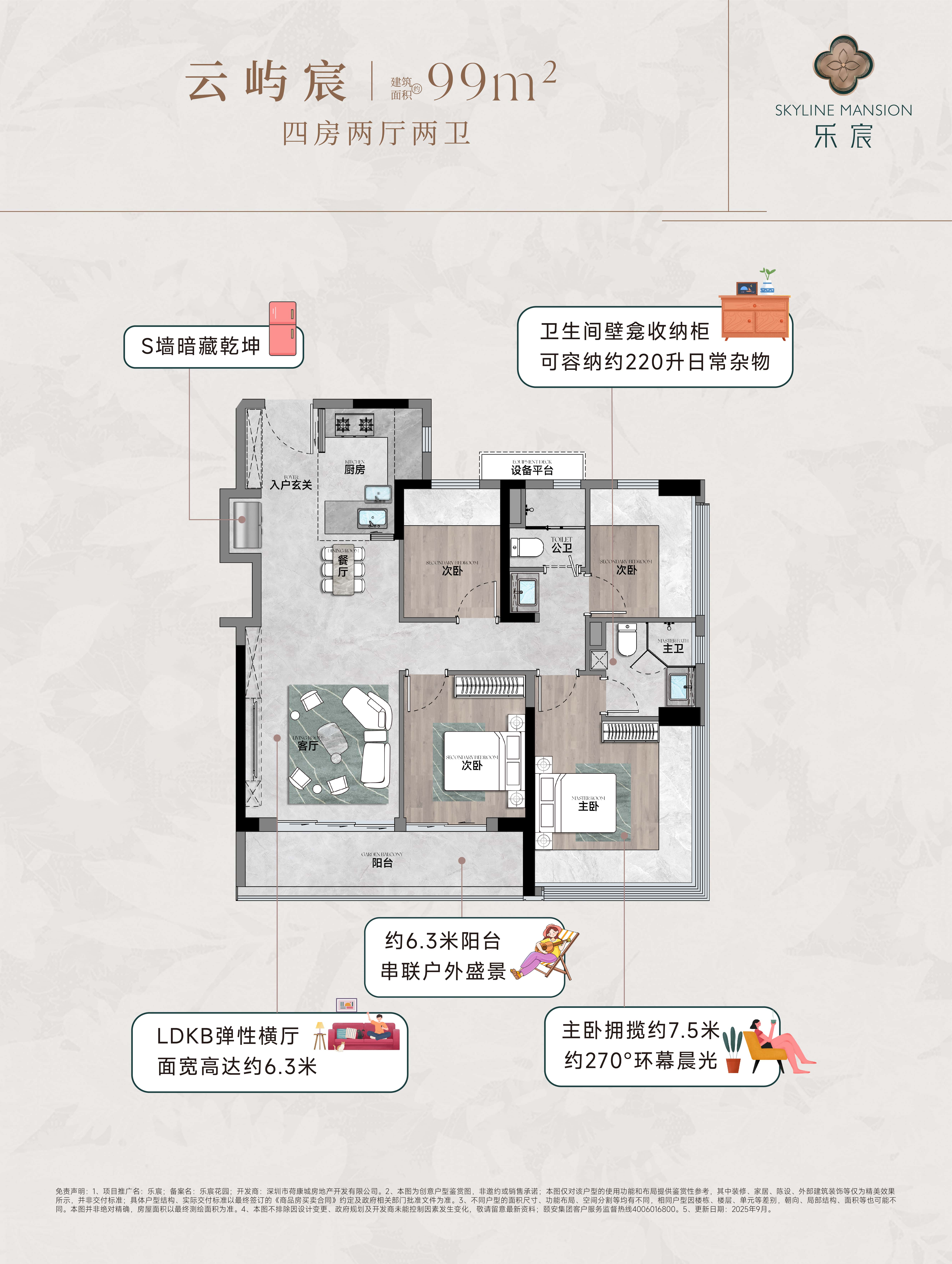 颐安乐城项目位于深圳大运新城南部枢纽板块,总占地面积约18.7万平方米,总建筑面积约100万平方米,绿化率约40%,分五期开发,是集住宅、商业、公园与教育于一体的百万方综合体。当前推售的三期乐宸总建面约17万平方米,由6栋29-32层住宅组成,共1086户,主打83–133㎡三至四房户型,以99㎡四房两厅两卫为主力产品。
