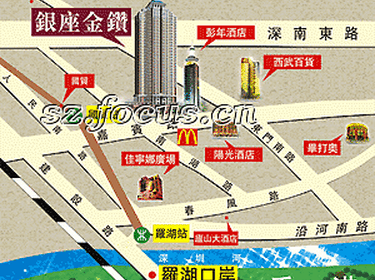 “银座金钻”位处罗湖国贸黄金商业板块中,是益田地产继益田花园、益田名园及共和世家之后成功开发的又一优质楼盘。在罗湖嘉宾路与东门南湖的交汇处,由著名的阳光酒店、西武百货、彭年酒店组成的金三角地段堪称为罗湖的曼哈顿商业中心。周边商厦林立,内外资银行密布,休闲娱乐设施一应俱全。银座金钻正是位于这样一块足以让所有深圳人备感自豪的地方,而它更以时尚的现代城市风格全新演绎了欧洲经典建筑特色,将建筑品质与生活品位优质结合,配合其少有的黄金地理位置,上演着典雅、隽永、现代、时尚的大都市新贵生活。