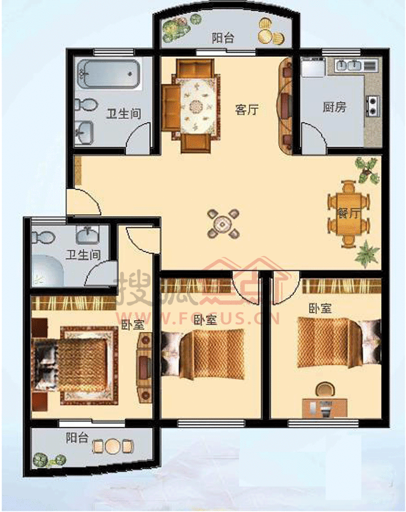 3室2厅2卫-3室2厅2卫1厨-85.00㎡