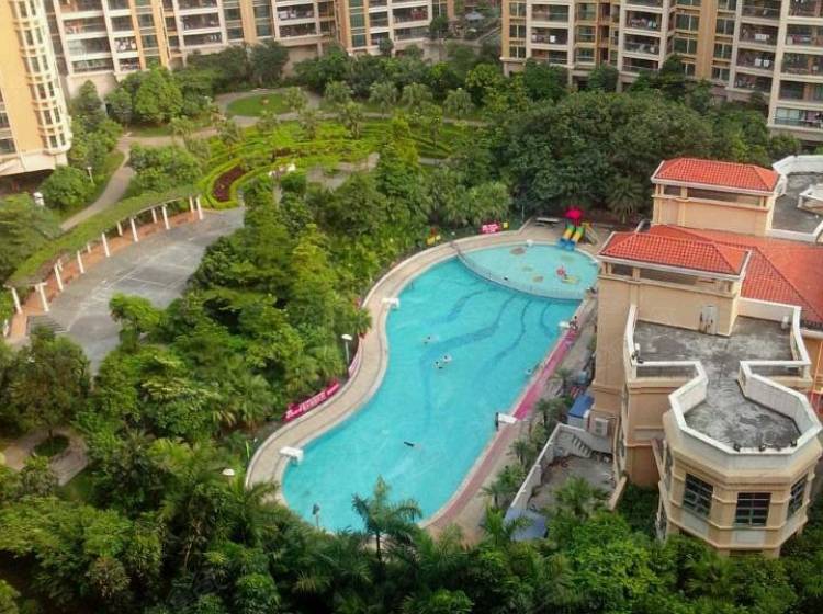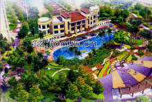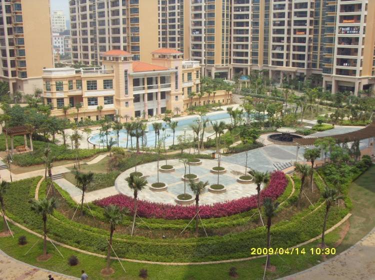 项目是一个典型的围合式社区,商业沿街布置层高为6米的商铺,小区内有网球场、会所、游泳池、及各种风情园林。项目内的中央花园面积约为3万㎡,是深圳西部工业组团内的小区整体中央公园。