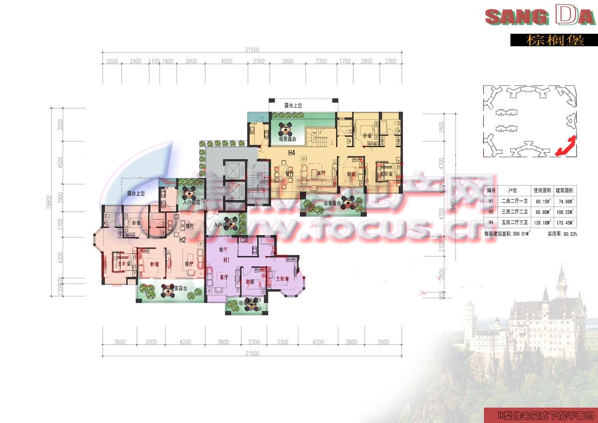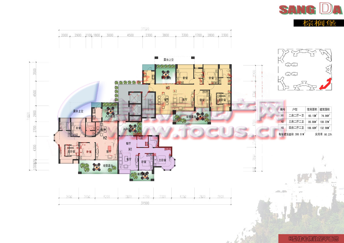 整个项目的户型中,三房及以上户型占78.7%,可见大户型为本小区的主力户型,在“90/70”政策背景下,将必然使“大户”社区成为房地产的绝唱,供求关系将呈现长期紧张的局面。