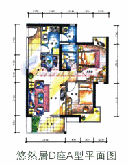豪方·悠然居,占地 8000 多平方米,总建筑面积 52295 平方米,共 374 户,由 4 栋 25 层的高层住宅联体而成,层高 2.95 米,良好的采光性和空气的对流,特别是窗和阳台的设计,把山景与蓝天自然地引入家中,使居住者体验到人与自然的和谐,以及拥有都市人羡慕的大于 80 %的负离子空气含量,都赋予了人们一种积极健康的生活方式,曾被推荐为“较佳周边环境大盘”。