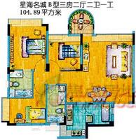 3室2厅1卫-3室 2厅 1卫 1厨 104.89平方米