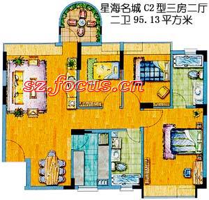 3室2厅1卫-3室2厅1卫1厨95.13平方米