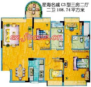 3室2厅1卫-3室2厅1卫1厨108.74平方米