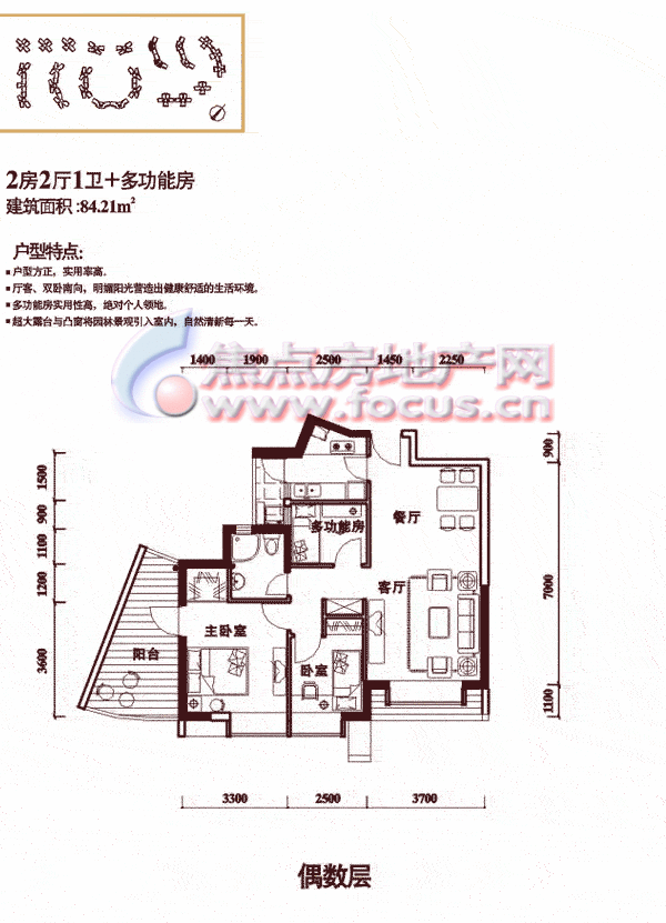 2室2厅1卫-2房2厅1卫+多功能房偶数层83.47-84.02