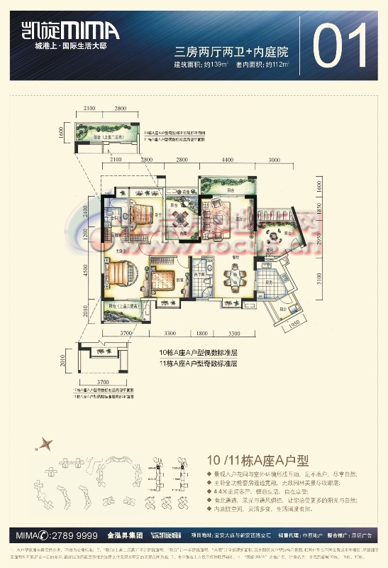 3室2厅2卫-金泓凯旋城2期景观王座10-11栋A座A型3房2厅2卫139平方米