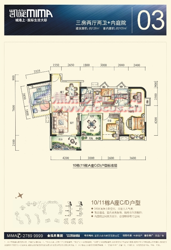 3室2厅2卫-金泓凯旋城2期景观王座10-11栋A座C-D型3房2厅2卫128平方米