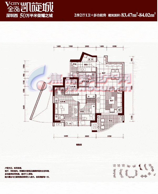2室2厅1卫-2房2厅1卫+多功能房奇数层83.47-84.02