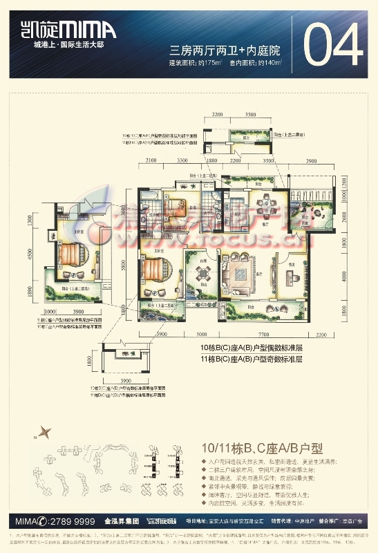 3室2厅2卫-金泓凯旋城2期景观王座10-11栋BC座A-B型3房2厅2卫175平方米