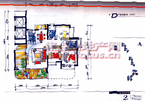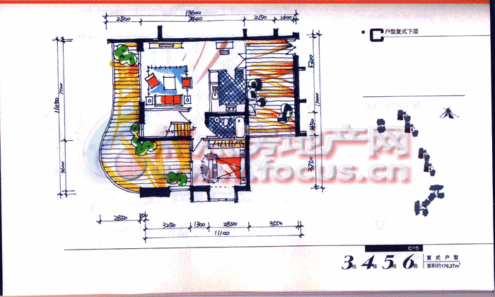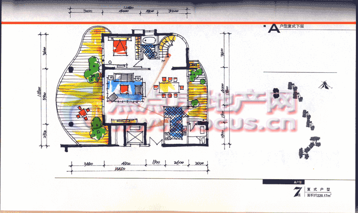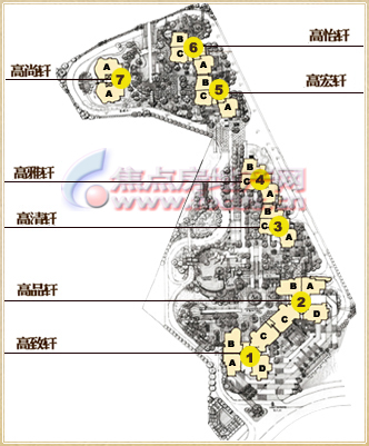 高山花园共413户,7栋18-32层的高层建筑沿大南山山体顺势而筑,两两相连,一字排开,其中3-7栋为175-220平方米的纯复式单位,1、2栋中亦有少量复式单位,共计224套。
