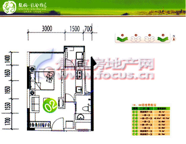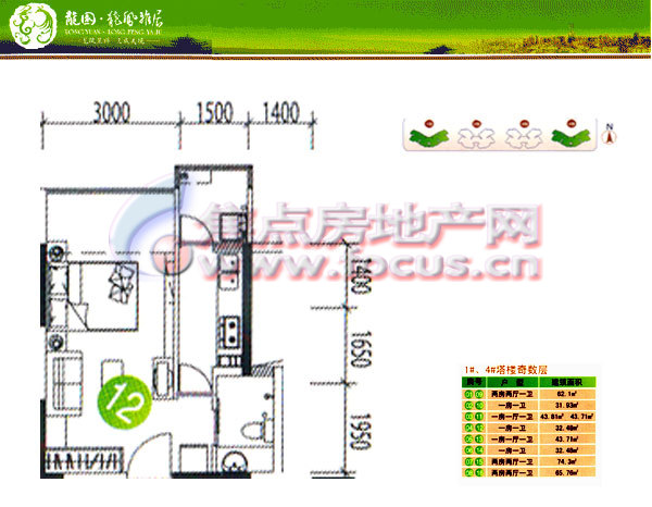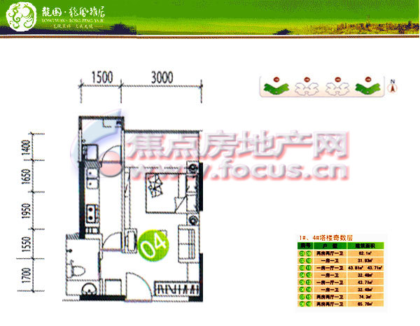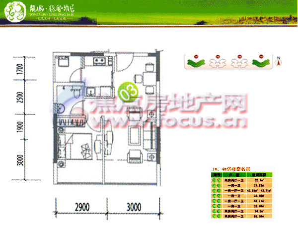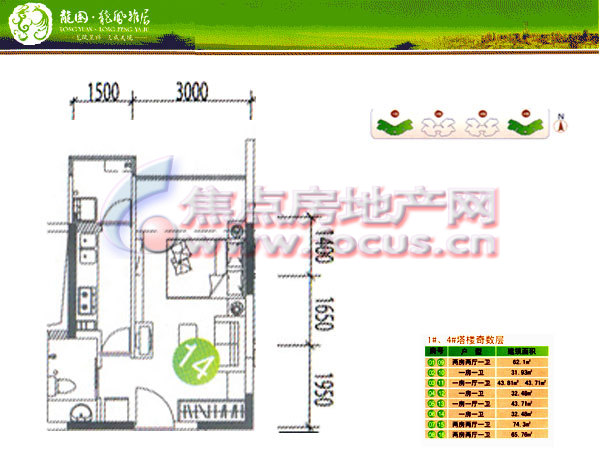 1室1厅1卫-1/4栋03房奇数层/偶数层)