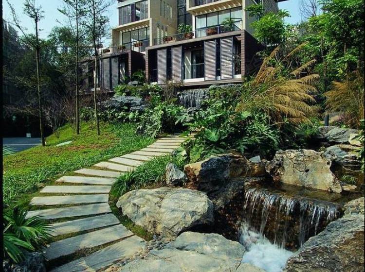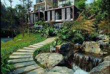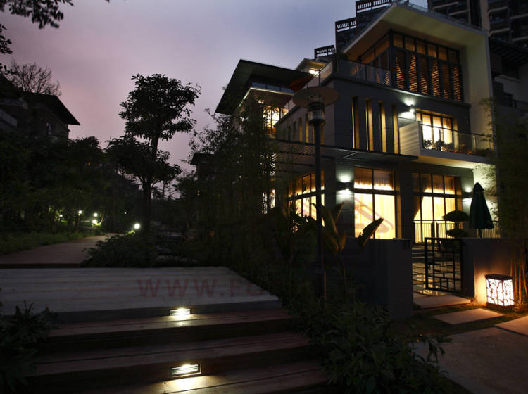 代表山地特色的“山、水、风、光”四大元素渗入建筑与环境设计的细节中,将生态主题具体化、精练化。山清水秀,风光旖旎的含义寓于其中,“山水”、“风光”成了风景、景观的代名词。形象地向客户传达了“隐、散、闲”的生活意境。