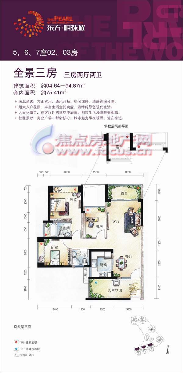 3室2厅2卫-三房两厅两卫94.64-94.87平方米
