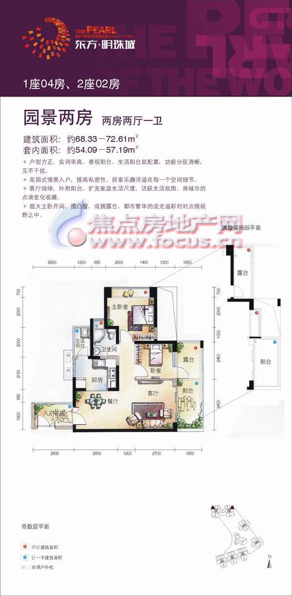 2室2厅1卫-两房两厅一卫68.33-72.61平方米