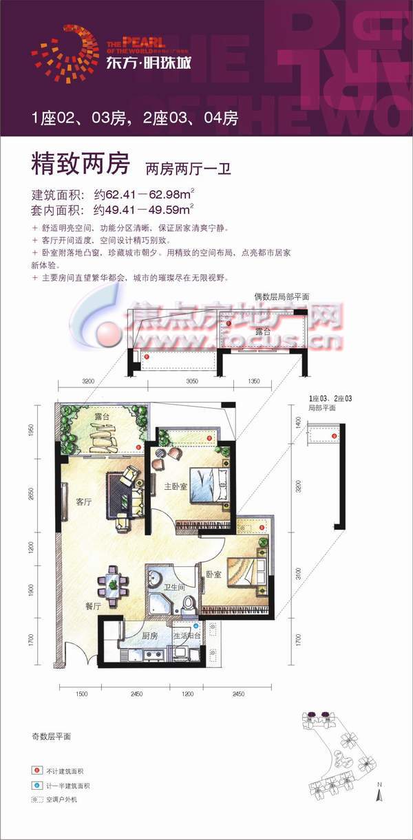 2室2厅1卫-两房两厅一卫62.41-62.98平方米