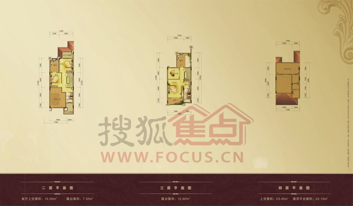 0室-龙园意境别墅23栋104单位168.85平二、三、四层平面图