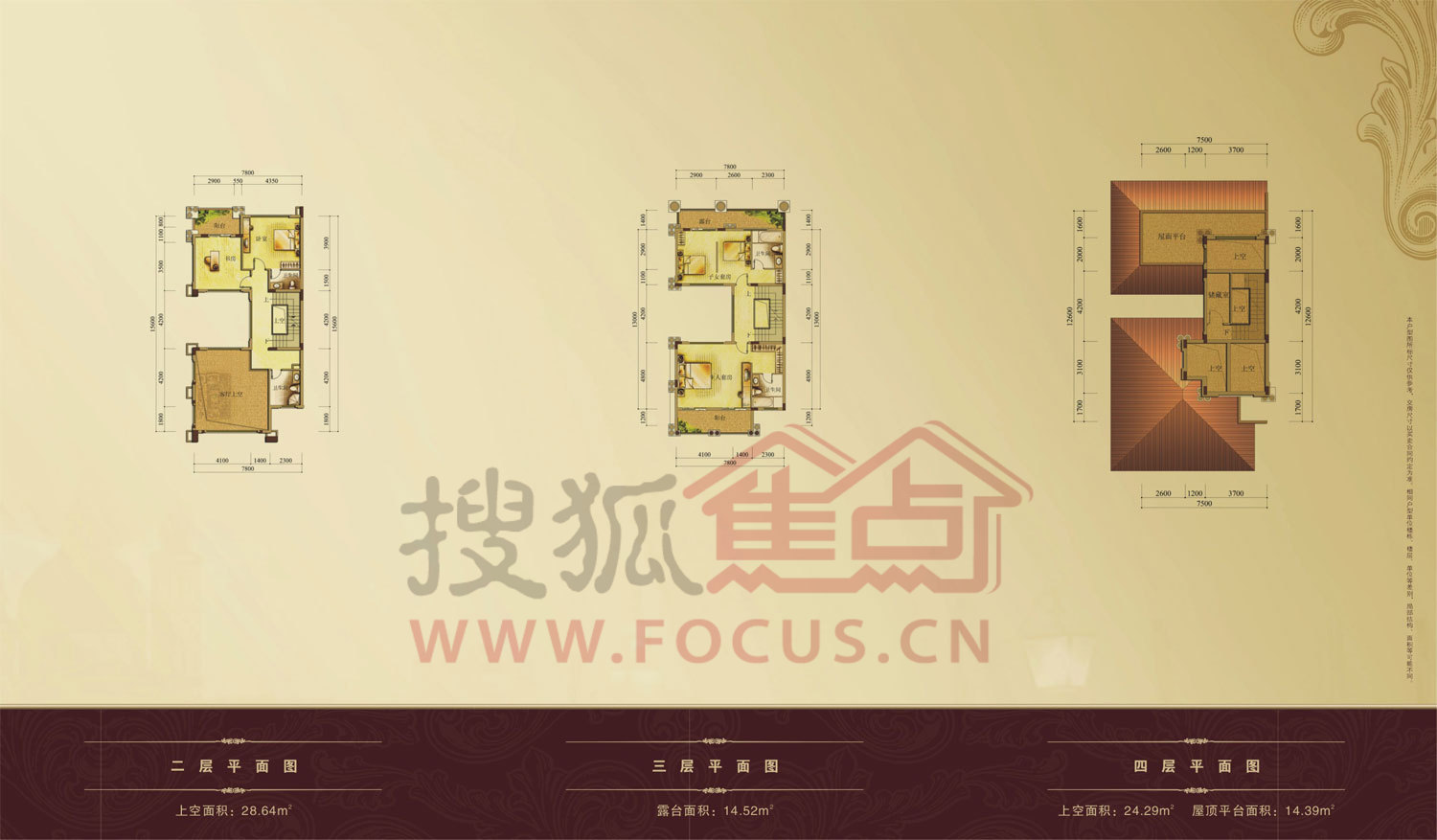 0室-龙园意境别墅17-20栋101、104单位289.55平二、三、四层平面图