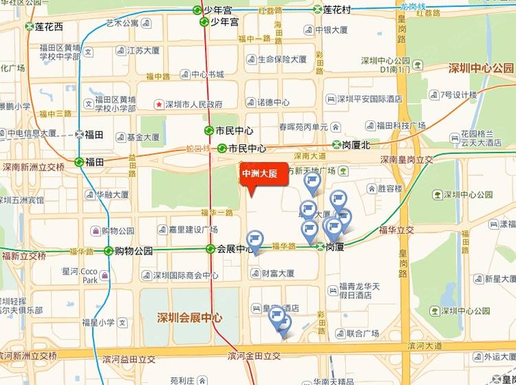 沿深南大道向东行驶2.5千米向右前方行驶进入中间岔道,沿深南金田立交桥途径金田路行驶251米靠右进入金田路,途径福华一路时向西南行驶278米左转调头,沿福华一路向东行驶275米到达中洲大厦。