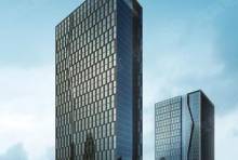 氟碳喷涂铝合金型材,半隐框LOW-E(6+12+6)玻璃幕墙系统,节能环保。