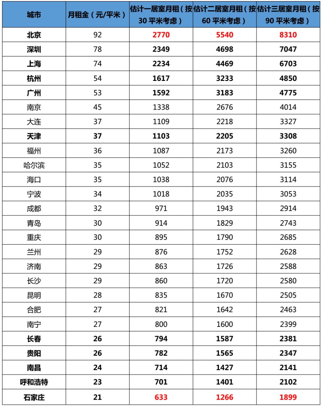 从房租上来看,石家庄、南昌、贵阳、南宁、合肥这些近期人气上升的省会城市,一居室月租只有633、714、782、800、821元/月,居住和生活成本,应该都要小很多。和一线城市相比,这些城市的幸福指数会高很多。