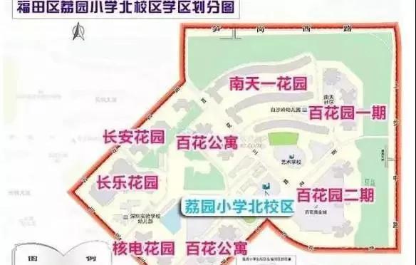 荔园外国语东校区(主要招收水榭花都的孩子)、西校区(主要招收香域中央花园、翠海花园、中旅国际公馆的孩子);