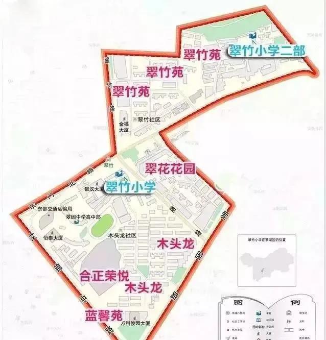3年级至6年级分布在1校区即原翠竹小学;1、2年级全部在2校区即原翠华小学。