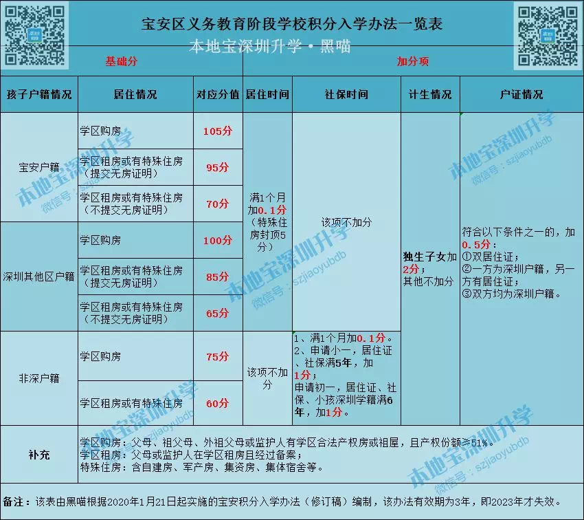 据宝安区教育局消息,2020年1月21日起,《宝安区义务教育阶段学校积分入学办法(修订稿)》正式实施,有效期3年。原有规定与该办法不符的,以该办法为准。