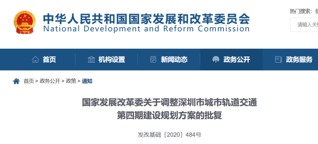 国家发展改革委关于调整深圳市城市轨道交通第四期建设规划方案的批复