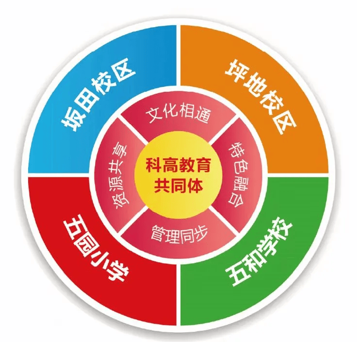 这里重点说一下科高龙岗分校、五和学校和五园小学三所成员校,涵盖小学、初中、高中的十二年全学段: