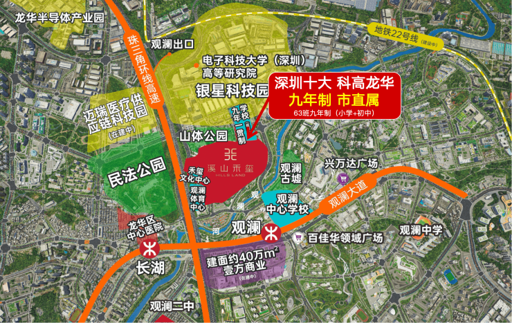 据了解,深圳科学高中龙华九年制学校项目将落子观澜片区,毗邻金光华溪山禾玺项目。一个是全国第一所以“科学”命名的深圳十大名校,一个是集聚华为、富士康等世界500强企业产业高地,这是一场“科创基因”与“产业热土”的双向奔赴。