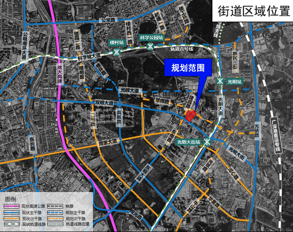 该项目位于深圳市光明区光明街道,东临规划文翠街、南临光明大街、西临规划建昌路、北临规划翠辉路。更新单元用地面积20091.9㎡,拆除用地面积17254.8㎡,开发建设用地为13191.1㎡,规划容积87060㎡,规划容积率6.6。