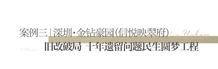 金钻豪园是深圳早期旧住宅区更新试点,因历史问题停滞十余年,涉及大量回迁业主与复杂债务。中信城开联合金融机构以法律隔离、封闭运行、快速盘活方案精准破局,短时间内完成资金投放、债务清偿、工程重启,有效解决历史遗留难题,让长期等待的回迁业主圆上安居梦。