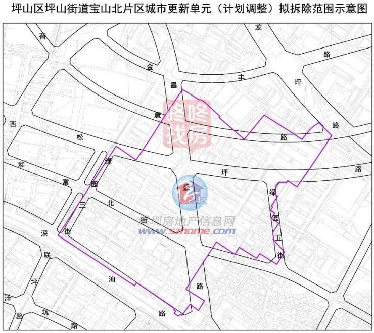 宝山北片区旧改位于坪山中心区深汕路以北、龙坪山以南,横穿昌盛路与松坪路。