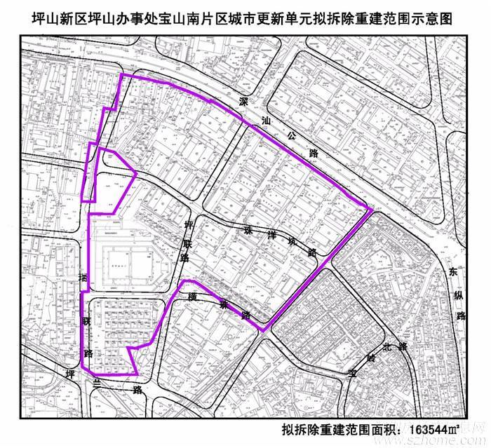 宝山南旧改位于坪山宝山第三工业区,东至规划联祥路、南至规划坪兰路、西至规划瑞联路,北至深汕路。