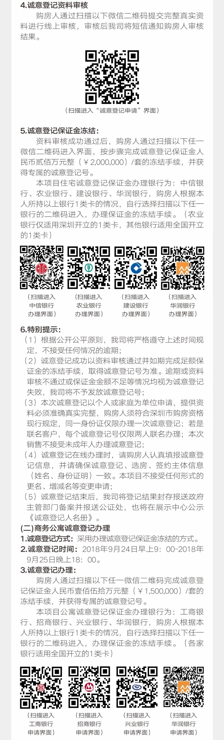 公寓则比住宅稍晚一周,9月24日-25日登记,26日将视登记情况确定选房方式。诚意登记客户需要冻结150万元。