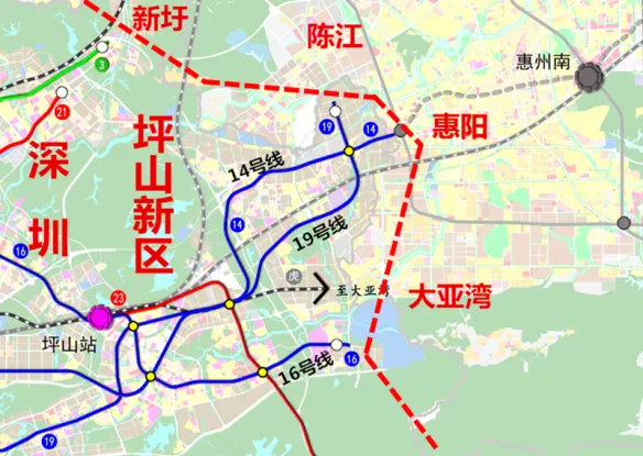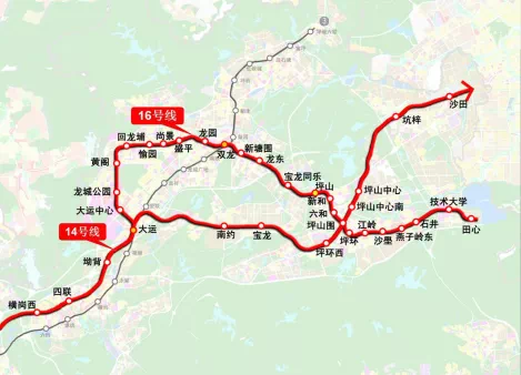 双地铁贯穿坪山大部分区域,目前地铁14号线和16号线正在建设当中,预计分别在2022年和2023年通车。地铁14号线作为东部交通的大动脉,未来可以极大地缩短坪山去往福田南山的通勤时间。