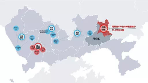 去年4月,深圳市就明确了“一区两核多园”的高新区发展布局,确立坪山园区作为深圳高新区两大核心园区的发展定位,是全市较大的高新区和核心园区,正在与南山并驾齐驱。