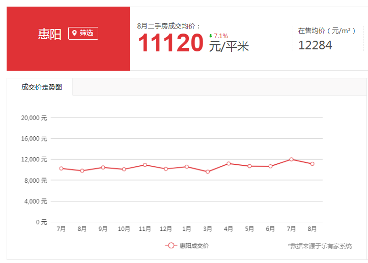 再来说价格,乐有家数据显示惠阳的二手房均价约1.1万/㎡。