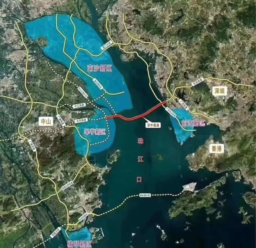 珠江入海口,连接深圳、东莞、南沙、中山