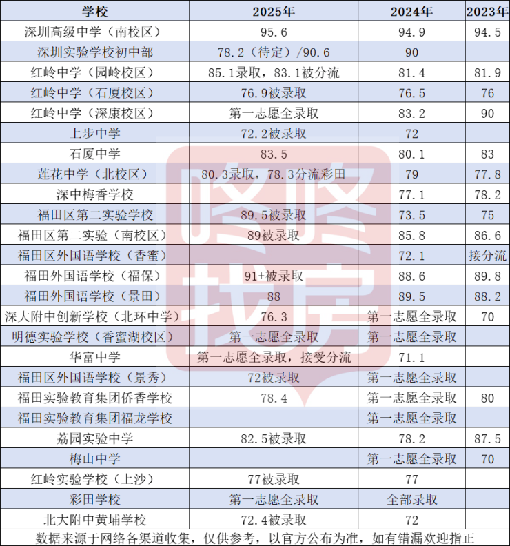 深圳各区小一初一录取分数线已经陆续出来了,在这整理了福田区、南山区、罗湖区等8区的小一初一录取情况。通过整理可以发现,今年的录取情况(以下数据均来自网络收集,如有缺漏,欢迎指正):