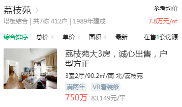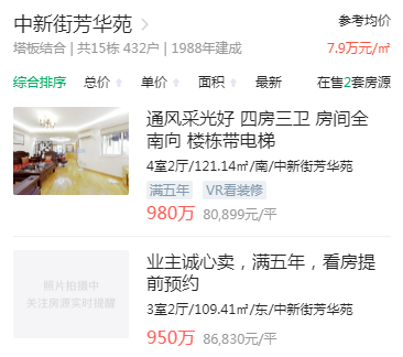 尽管网上给出的小区均价在不到8万/平,实际上小区挂牌出售的房源单价已经去到了8万以上。